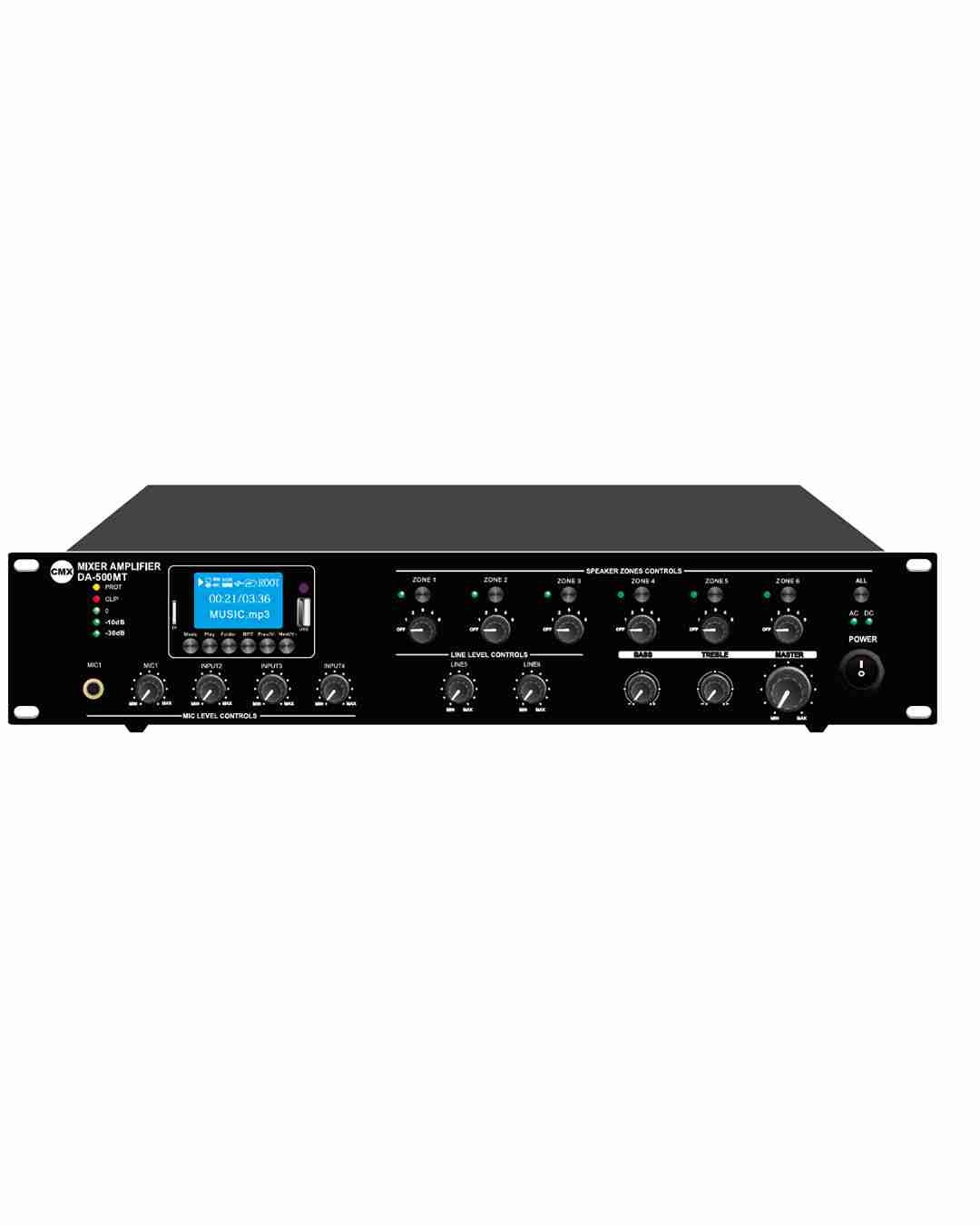 CMX Audio DA-500MT 500W 6 Zone Mixer Amplifier with Bluetooth, USB, FM & MP3 for PA Systems